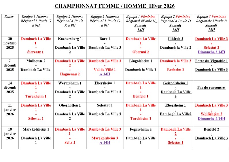 Championnat par équipes hiver seniors 2026