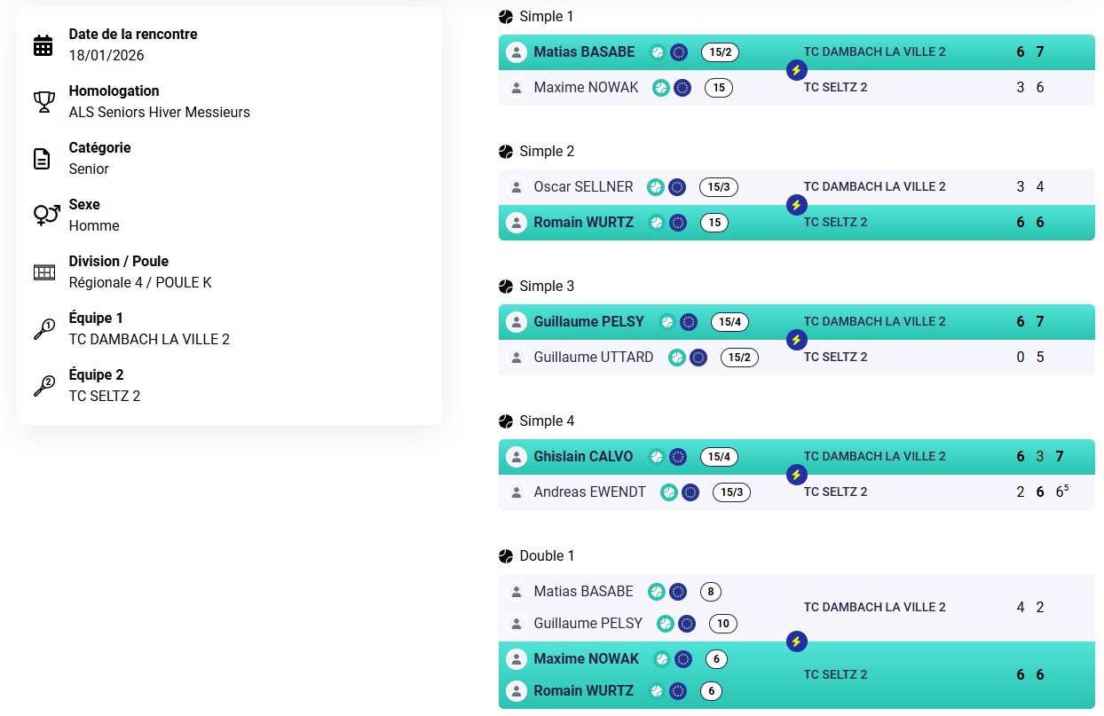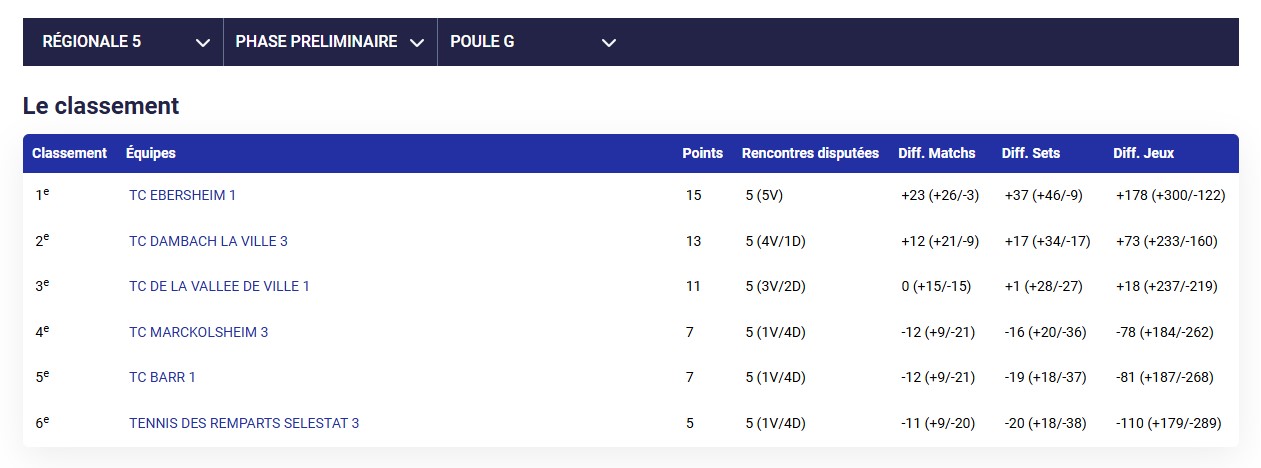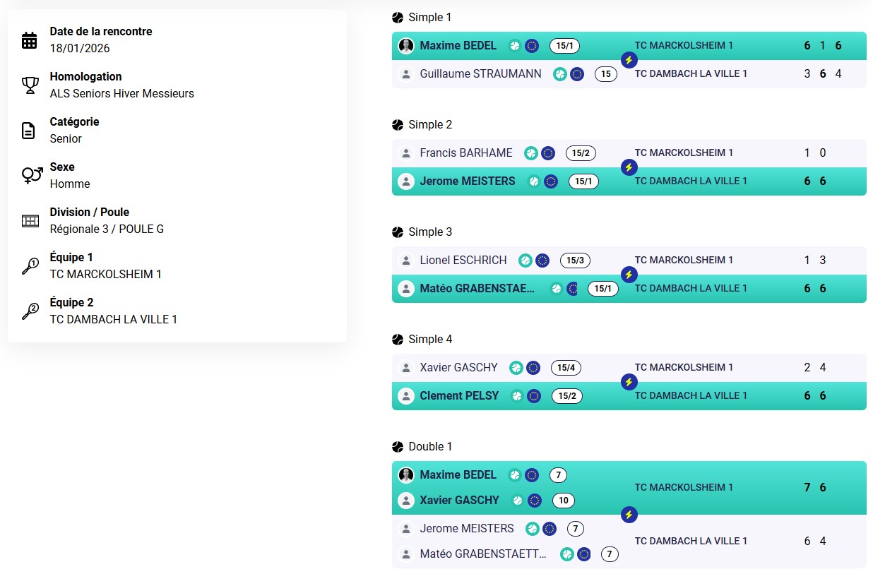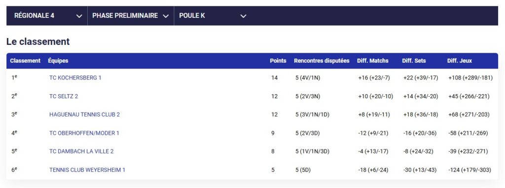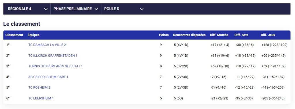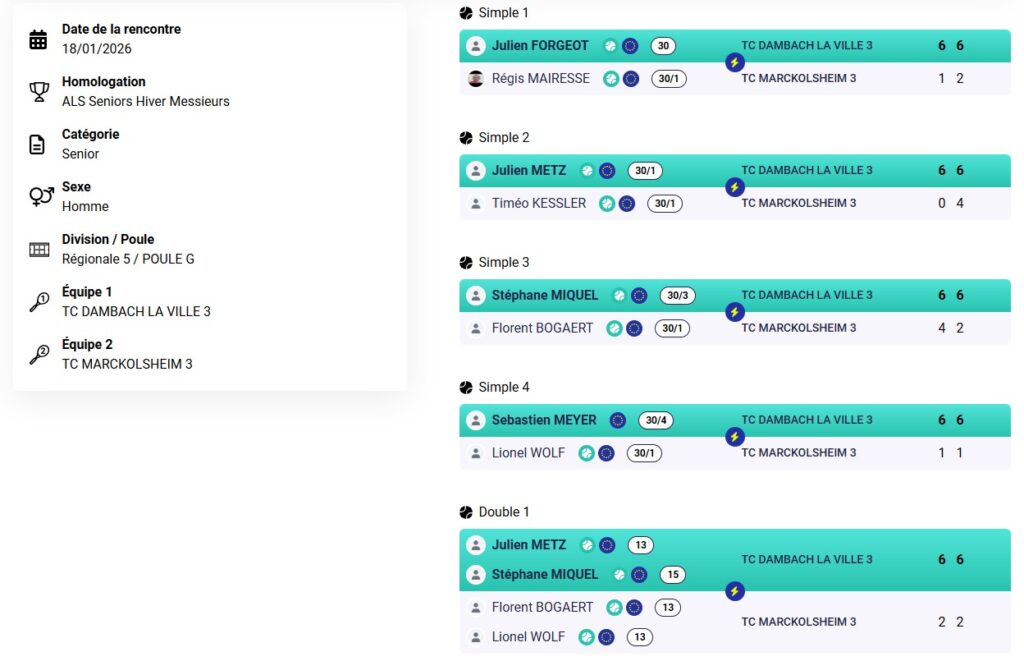 Résultats des TMC du week-end au TC Dambach-la-Ville