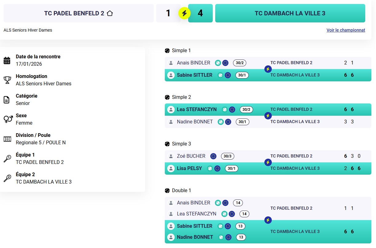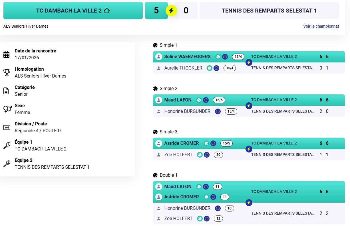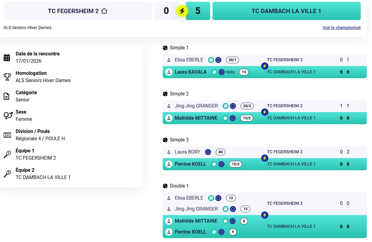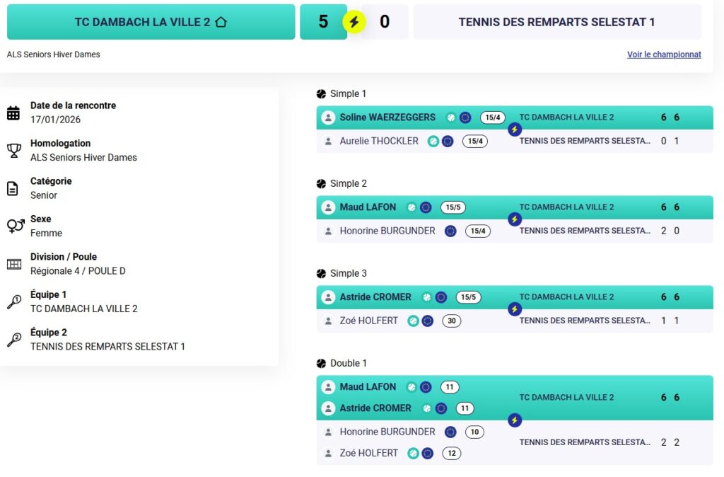 Résultats des TMC du week-end au TC Dambach-la-Ville