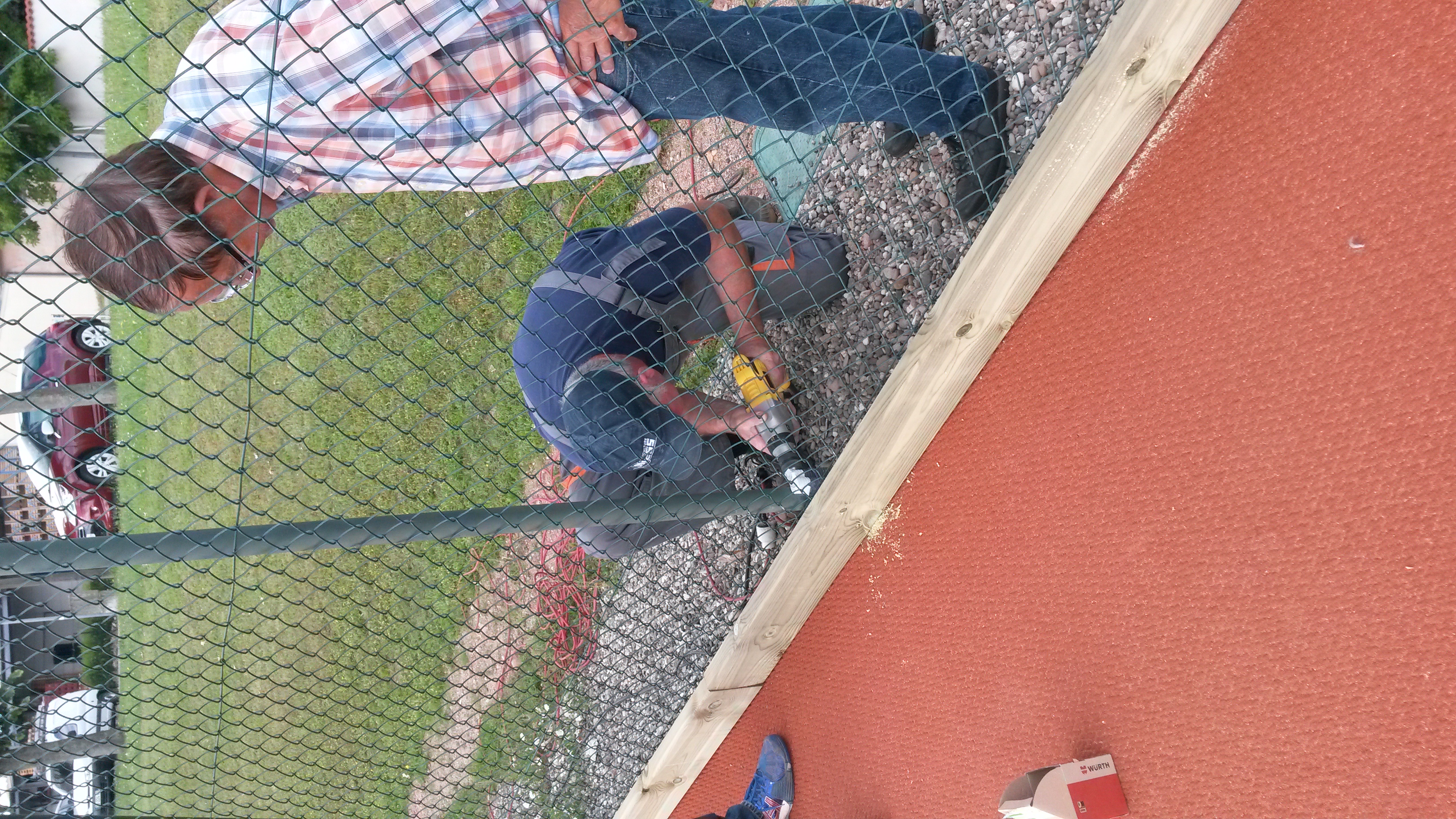 Avec l’aide d’un agent communal, les planches ont été mise en place tout autour des terrains 1 et 2 pour que les feuilles ne rentrent plus sur le court et pour que le sable ne sorte pas des courts à l’extérieur.