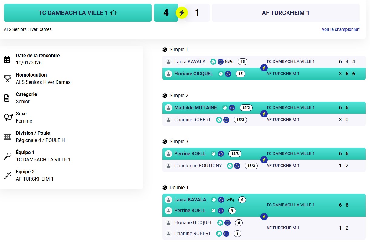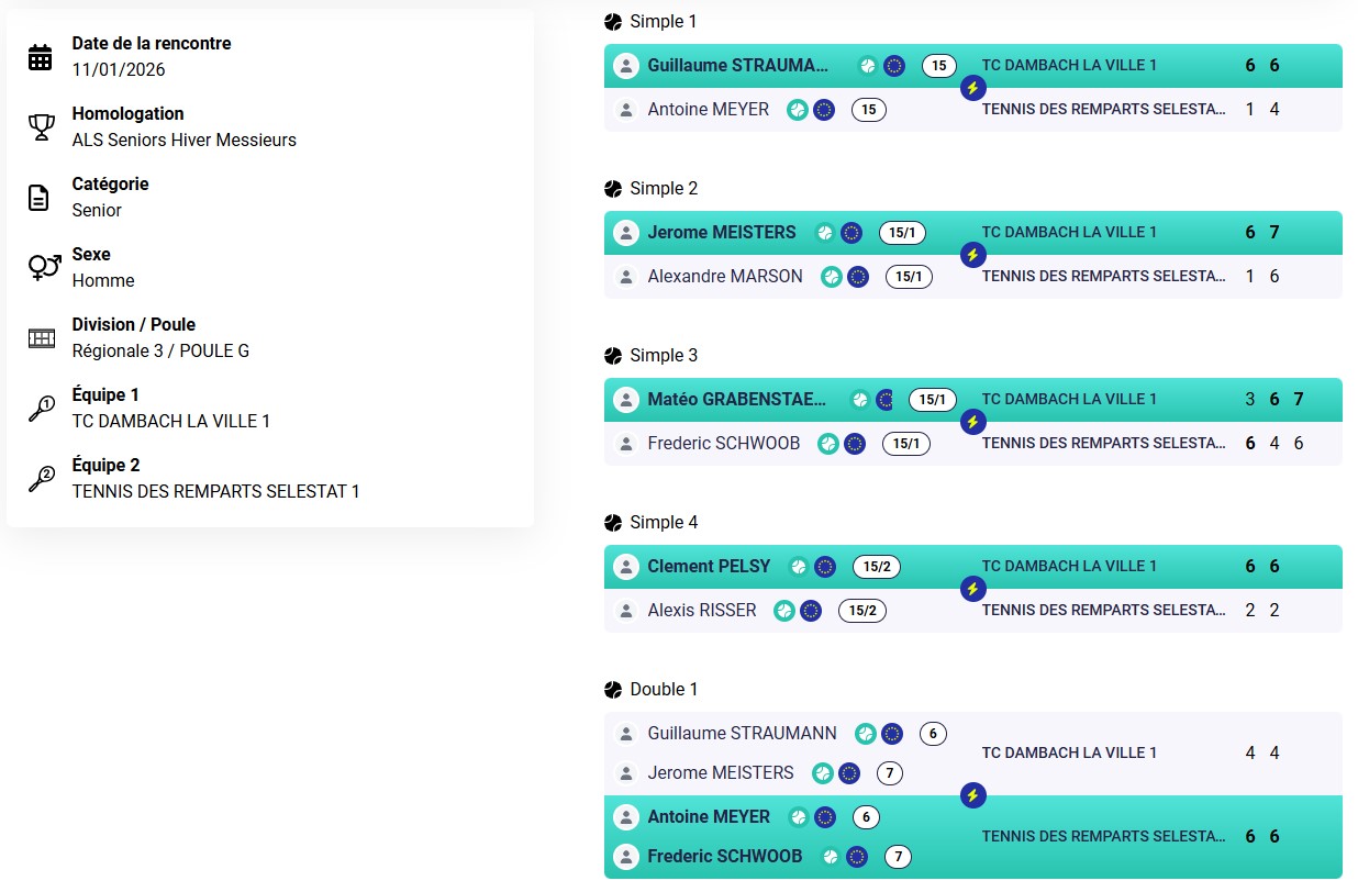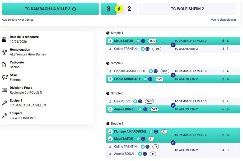 Résultats des TMC du week-end au TC Dambach-la-Ville