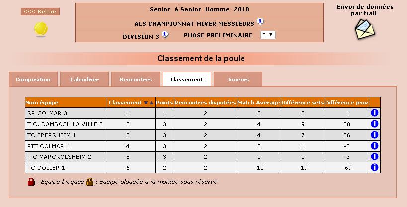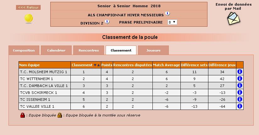 Résultats et classements après la 2ème journée des Championnats Seniors Hiver 2018 Equipe 1 Femme : Equipe 2 Femme : Equipe 1 Homme : https://www.tennisdambachlaville.fr/wp-content/uploads/2017/12/VID-20171210-WA0009.mp4 https://www.tennisdambachlaville.fr/wp-content/uploads/2017/12/VID-20171210-WA0007.mp4 Equipe 2 Homme : Publié le décembre 11, 2017 - Actualités