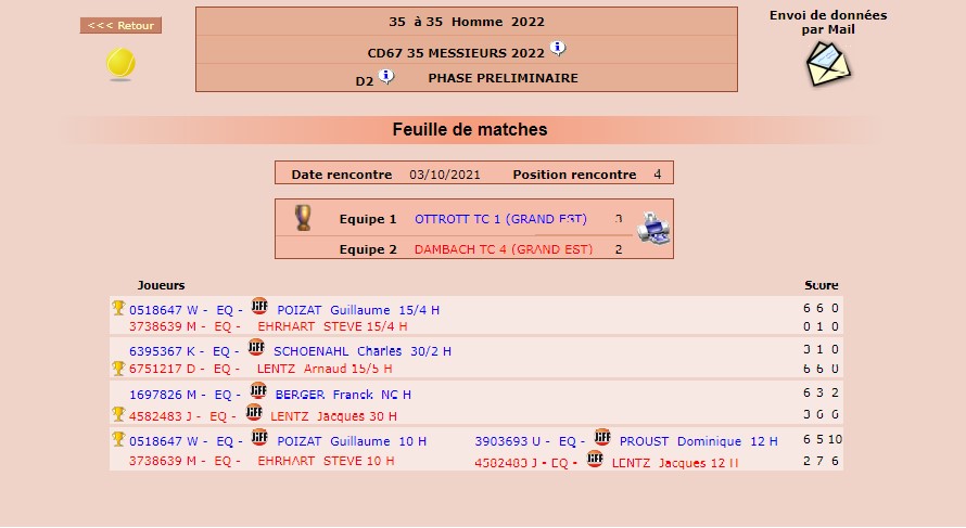 Résultats quatrième journée des championnats vétérans 2022